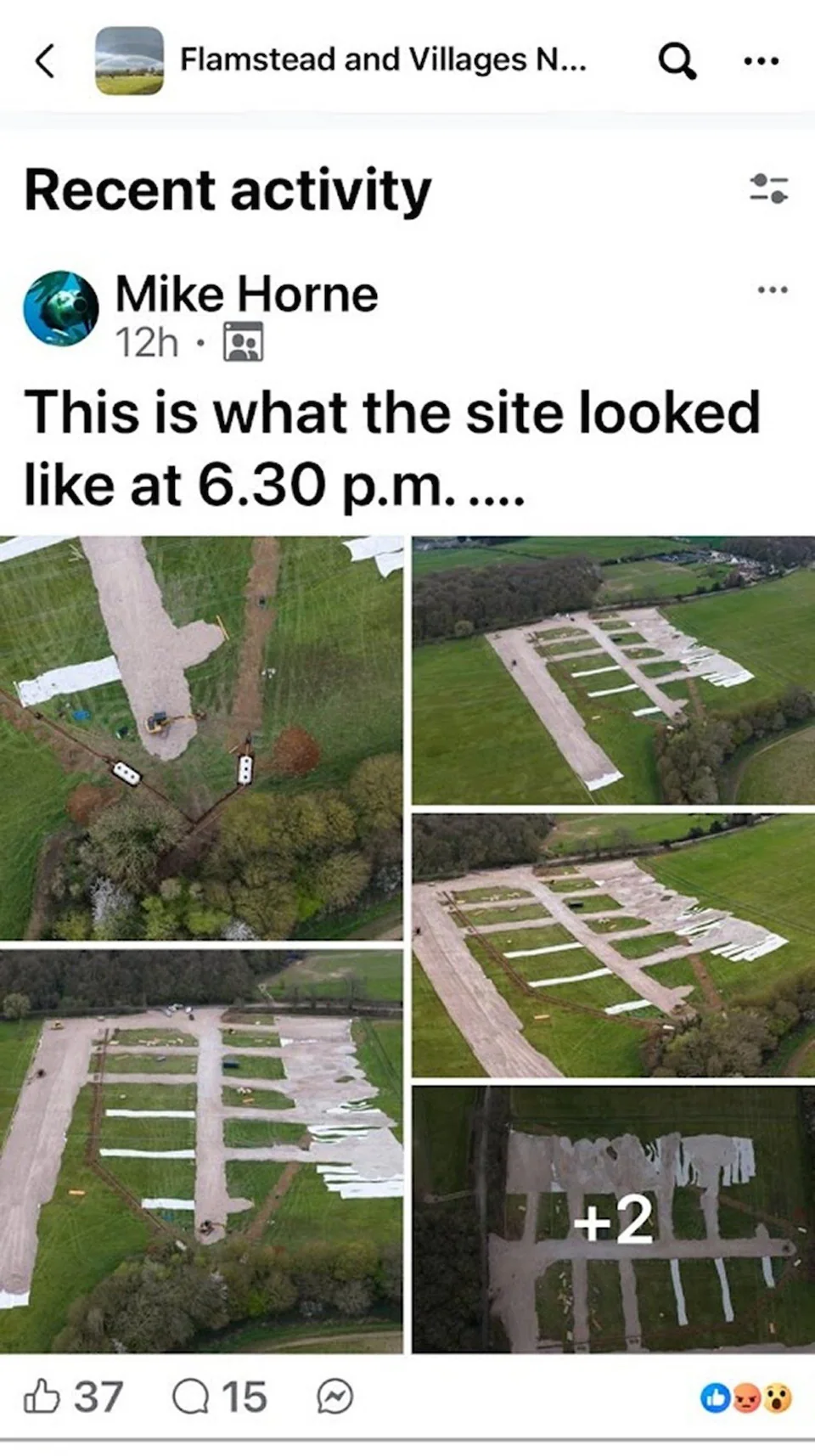 On Thursday, diggers and bulldozers arrived at the field off Friendless Lane, near the village of Flamstead, on the edge of the Chiltern Hills in Hertfordshire. Caravans are said to have followed in the early hours of Easter Sunday.